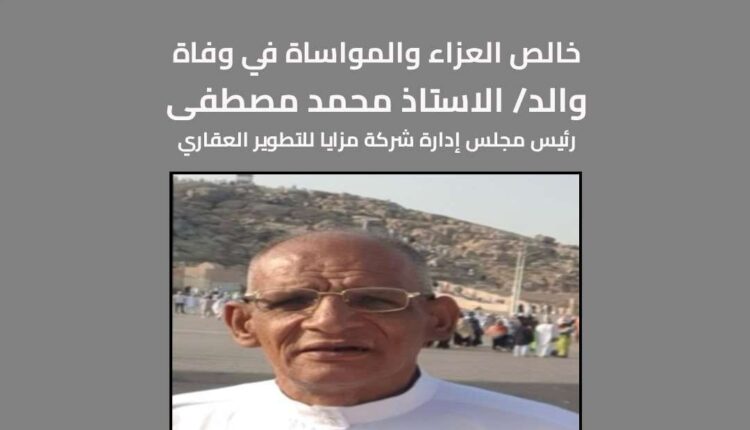 يشاطر العاملون في شركة مزايا للتطوير العقاري الاستاذ محمد مصطفى، رئيس مجلس إدارة شركة مزايا للتطوير العقاري في وفاة والده السيد/ مصطفى علي حسن.