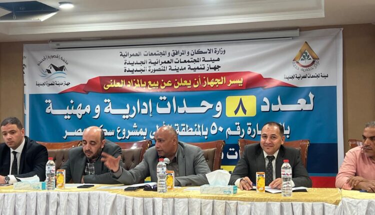 أعلن المهندس محمد الغمراوي، رئيس جهاز تنمية مدينة المنصورة الجديدة، بيع 8 وحدات إدارية ومهنية بمساحات تتراوح من( 109م2 – 118م2) للوحدة بالعمارة رقم 50 بمشروع سكن مصر بمدينة المنصورة الجديدة، وذلك بجلسة مزاد علني بحضور ممثلي هيئة المجتمعات العمرانية، ومجلس الدولة، والجهات ذات الصلة.