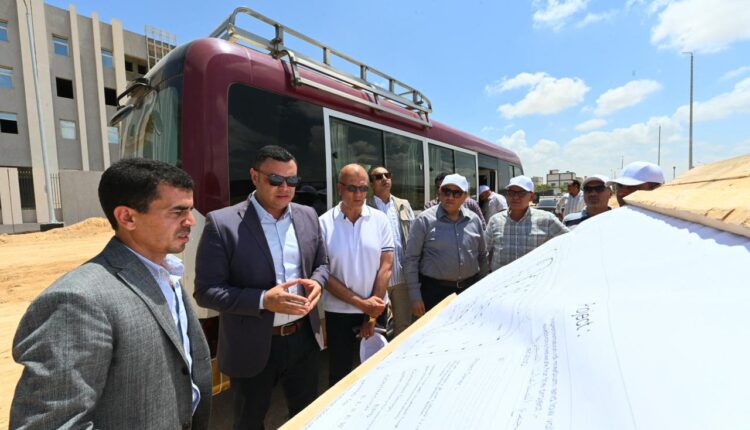 ثم انتقل وزير الإسكان، ومرافقوه، إلى موقع أعمال تنفيذ كوبري أعلى مسار القطار الكهربائي السريع بالمدينة.