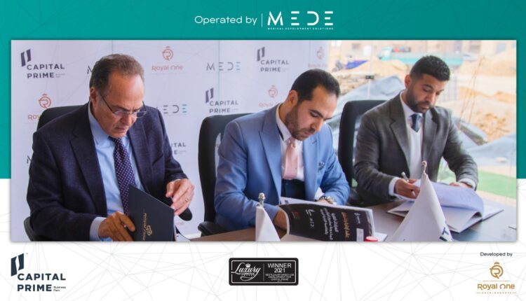 تعاقدت شركة “رويال وان للتطوير العقاري” مع مجموعة MEDE لتقوم بدور المشغل للجزء الطبي بمشروع “كابيتال برايم بيزنس بارك” بالعاصمة الإدارية الجديدة، ووقع التعاقد كل من المهندس شريف شعلان رئيس مجلس إدارة شركة “رويال وان” والمهندس فتح الله فوزي عضو مجلس إدارة مجموعة MEDE.