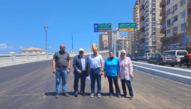 كما قام اللواء أ.ح مهندس محمود نصار، بتفقد أعمال تنفيذ إنشاء كوبرى محور السادات على مستويين لربط شارع السادات (٤٥) بالطريق الساحلى الدولى عند التقاطع مع شارع مصطفى كامل.