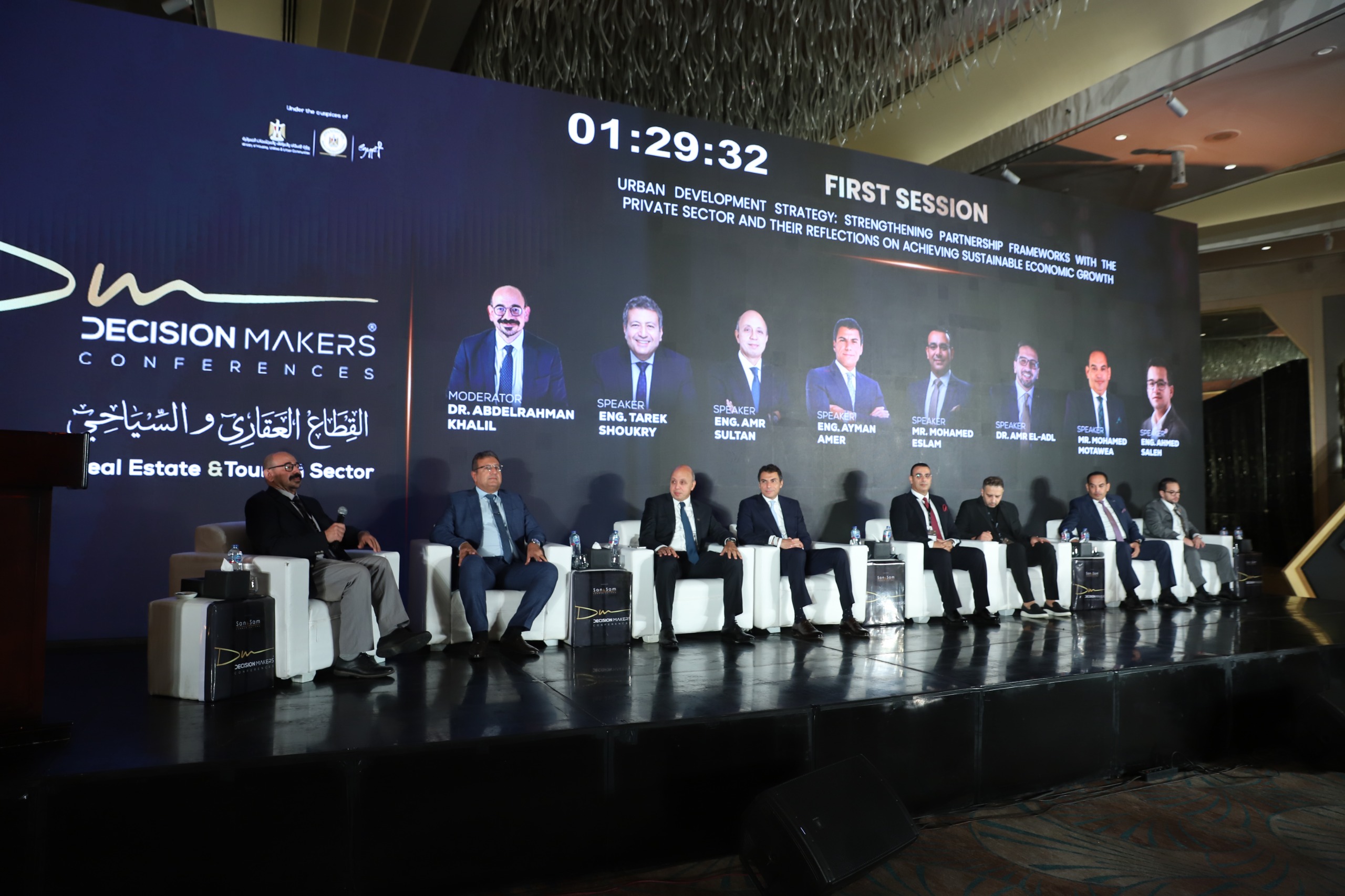 وشهدت الجلسة الافتتاحية حضورًا لافتًا لممثلي وسائل الإعلام المختلفة، إلى جانب مشاركة نخبة من المتحدثين من القطاعين العام والخاص، من بينهم المهندس مصطفى منير، رئيس الجهاز التنفيذي للهيئة العامة للتنمية السياحية، المهندس أحمد يوسف، الرئيس التنفيذي للهيئة المصرية العامة للتنشيط السياحي، المهندس عمرو سلطان، الرئيس التنفيذي والعضو المنتدب لشركة LMD، قال المهندس طارق شكري، وكيل لجنة الإسكان والرئيس التنفيذي لشركة العربية للتطوير العقاري، المهندس أيمن عامر، مدير عام شركة سوديك، المهندس محمد إسلام، المدير التنفيذي لشركة إبني، الدكتور عمرو العدل، الرئيس التنفيذي لشركة MBG، السيد محمد مطاوع، رئيس مجلس إدارة مجموعة مطاوع، المهندس أحمد صالح، الرئيس التنفيذي لشركة دار العالمية للتطوير العقاري، و المهندس سامر فراج، الرئيس التنفيذي لشركة سان اند سام المنظمة للمؤتمر.