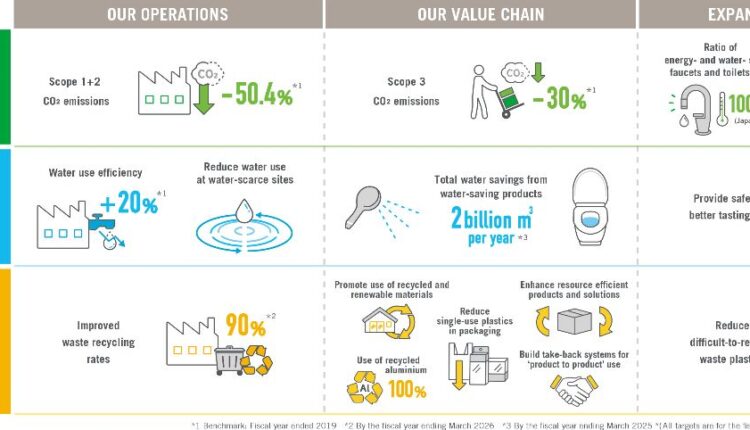 بالإضافة إلى ذلك، بحلول السنة المالية 2031، ستكون الصنابير والمراحيض في اليابان موفرة للطاقة والمياه بنسبة 100%.